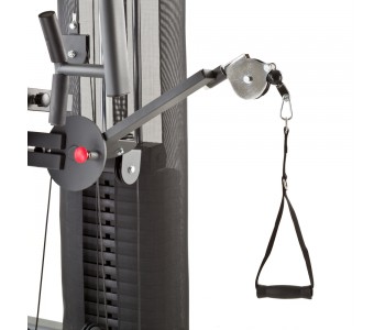 Силова станція inSPORTline ProfiGym C95 - багатофункціональний домашній тренажерний зал, який пропонує понад 100 способів ефективного зміцнення всього вашого тіла. Міцна сталева рама 50 x 100 мм є надзвичайно стійкою і забезпечує максимальне навантаження до 120 кг. Щоб зміцнити м'язи рук та м'язів спини, ви можете використати верхню тягу. Для тренування ніг можна використовувати подовжувач або нижню тягу, яка допомагає імітувати гребні рухи. Силова станція inSPORTline ProfiGym C95 має зустрічні шківи, які можна налаштувати на 7 позицій, забезпечуючи ще більше варіантів вправ. Інші переваги включають зручну оббивку, ергономічну спинку, регульоване сидіння і гнучкі сталеві троси, які практично не шумлять. Навантаження можна легко відрегулювати до 91 кг (стеки 13 х 7 кг) . Завдяки цим атрибутам, inSPORTline ProfiGym C95 став популярним продуктом для домашнього використання.
