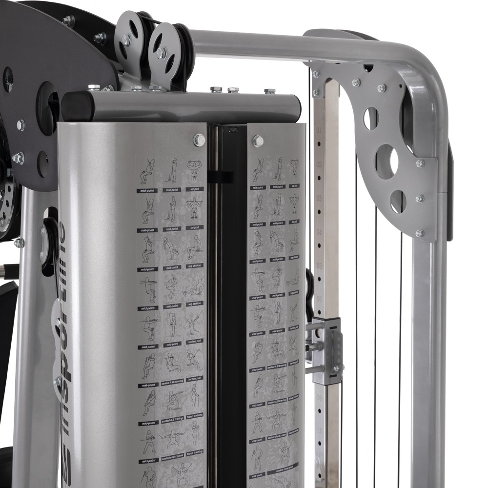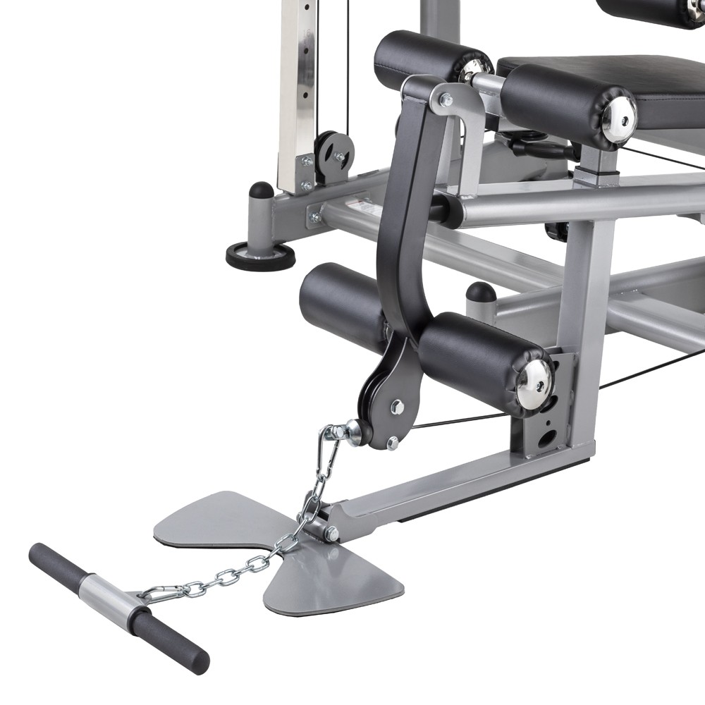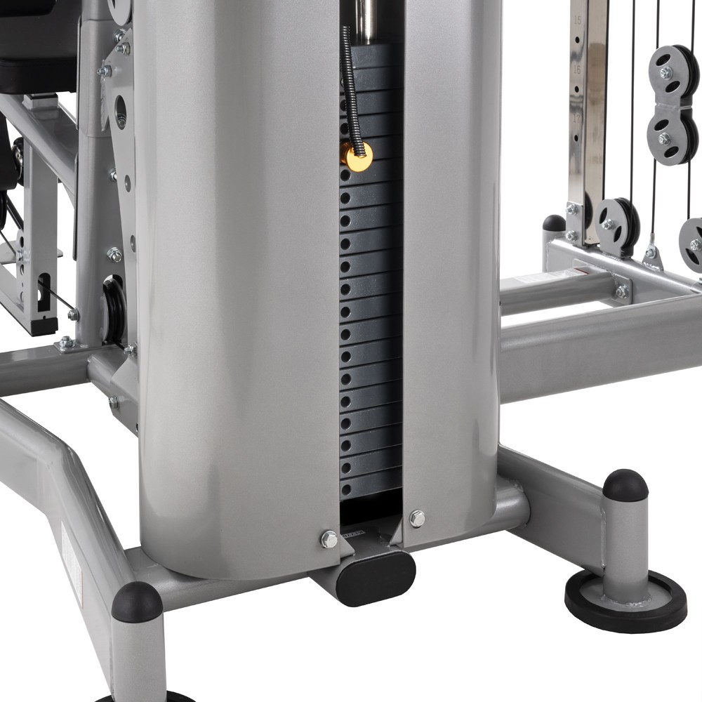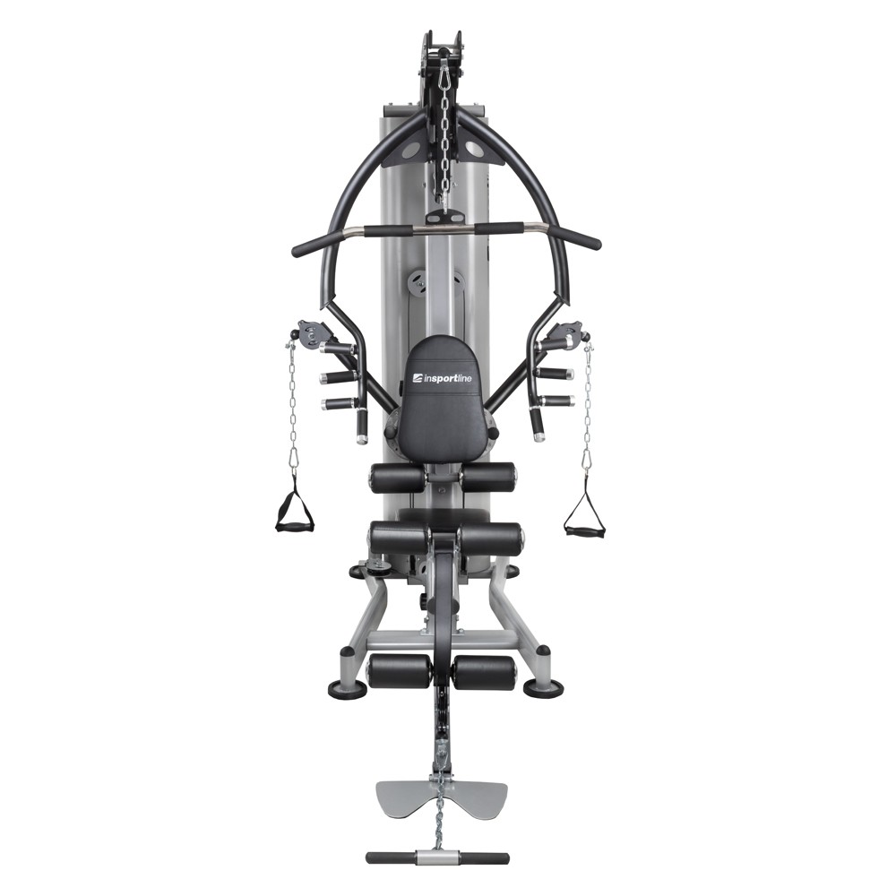 Домашній тренажерний зал inSPORTline Profigym C400 зробить ваше домашнє тренування трохи цікавішим. Він дозволяє зміцнити груди, руки, плечі, м'язи спини, прес та ноги декількома способами. Він оснащений верхніми та нижніми шківами, багатоцільовими руками для вправ, які можна використовувати для жиму від грудей та/або веслування (з кількома захватами), а також станціями для витягування троса «метелик» та розгинання/згинання ніг стоячи. Усі станції підключені до системи вагового стека вагою 90 кг. Сталева рама стійка та покрита міцним покриттям.