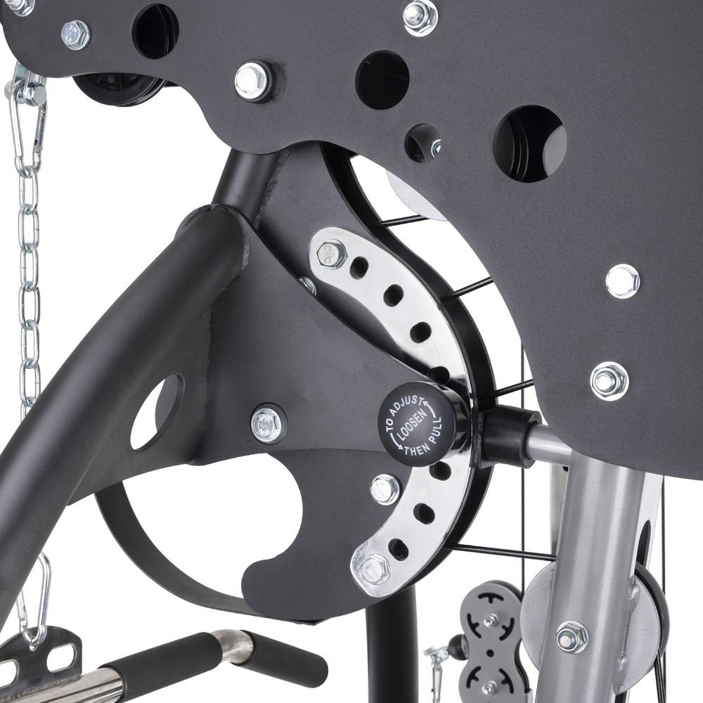 - Бічний шків ( габаритні розміри: L 225 x W 172 x H 213 см) - регульований по висоті (44 - 193 см); Діапазон руху 180°