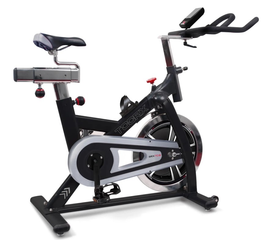Сайкл-тренажер Toorx Indoor Cycle SRX 70S (SRX-70S) від італійського виробника Garlando S.p.A. призначений для інтенсивного кардіотренування в домашніх умовах. Тренажер має колодкову гальмівну систему з ручним безступінчатим регулюванням навантаження, а також сучасний комп'ютер з необхідним набором функцій. Важкий 22-кілограмовий маховик разом з ремінним приводом забезпечують безшумність роботи тренажера та достатнє навантаження навіть для підготовлених спортсменів. Спін байк розрахований на вагу до 125 кг і підійде для користувачів зростом до 2 м. Вбудований приймач для бездротового датчика вимірювання пульсу буде доречним під час тренування для контролю частоти серцевих скорочень. Спортивне сидіння і кермо регулюються по висоті та в горизонтальній площині, забезпечуючи індивідуальне налаштування. Транспортувальні ролики в передній частині тренажера дозволяють вільно переміщати його по кімнаті.