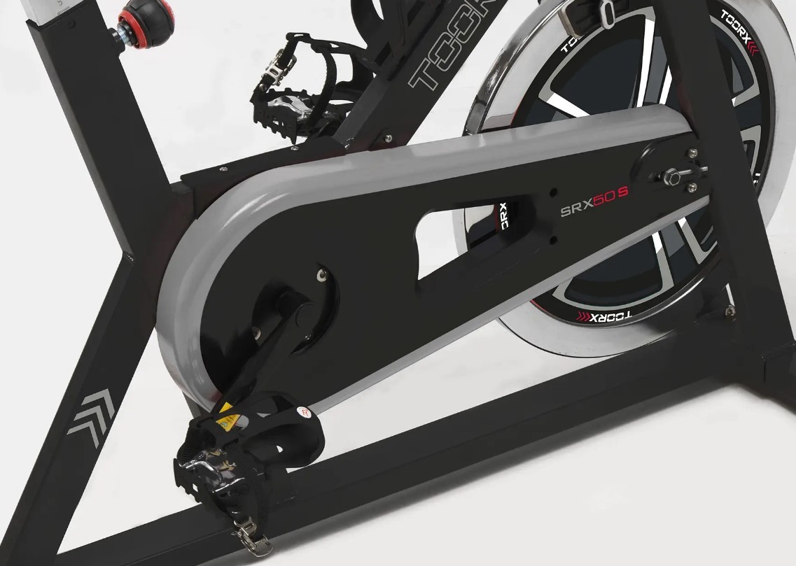 Сайкл-тренажер Toorx Indoor Cycle SRX 50S (SRX-50S) від італійського виробника Garlando S.p.A. призначений для інтенсивного кардіотренування в домашніх умовах. Тренажер має колодкову систему опору з ручним безступінчатим регулюванням навантаження, а також простий у користуванні комп'ютер. Важкий 20-кілограмовий маховик разом із ланцюговим приводом забезпечують достатнє навантаження навіть для підготовлених спортсменів. Спін байк розрахований на вагу до 125 кг і підійде для користувачів зростом до 2 м. Вбудовані сенсорні датчики вимірювання пульсу будуть доречними під час тренування для контролю частоти серцевих скорочень. Спортивне сидіння регулюється по висоті та в горизонтальній площині, а кермо - по вертикалі, забезпечуючи індивідуальне налаштування. Транспортувальні ролики в передній частині тренажера дозволяють вільно переміщати його по кімнаті.