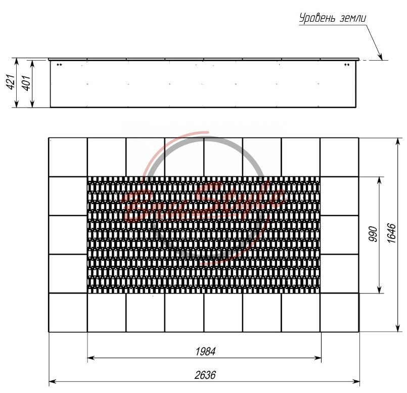 Батут вбудований у кадр 2640 х 1650 см. Полотно стрибка робиться за допомогою зібраних пластикових сегментів, незалежно від одного на нержавіючому кабелі d = 5 мм. Підходить для використання на небудові ігрові майданчики. NBSP; обладнання: металева поверхня рами, NBSP; армована пластикова сітка, оббивка рамки оснащена захистом від плитки гумової крихти високої щільності, товщиною до 4 см, залежно від конфігурації.