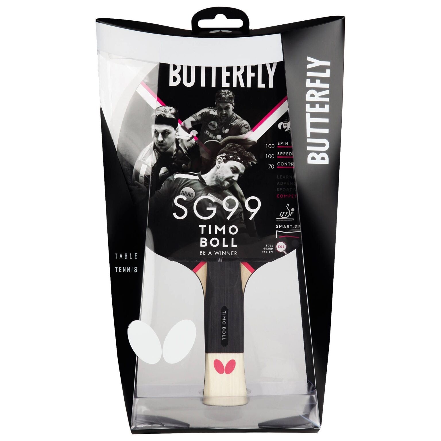 Метелик Тімо Болл SG99 Ndash Ракетка; Новинка 2020 року. Найкраща ракетка з серії Timo Boll SG. Високий рівень обертання та швидкості для закоханих гострої атаки гри. З обох боків на ракетці встановлюються підкладка метелика з товщиною 1,8 мм