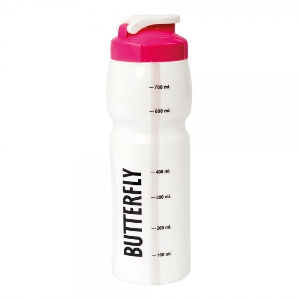 Пляшка з водою з водою. Пляшка має кришку клапана. Назва та логотип Метелик наносять з кінця. Прозора вставка з підстилкою допомагає зрозуміти кількість рідини в пляшці.