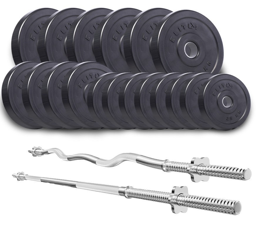 Склад до набору: складені елітумні диски: 2,5 кг - 8 шт. 5 кг - 4 шт. 10 кг - 6 шт.
