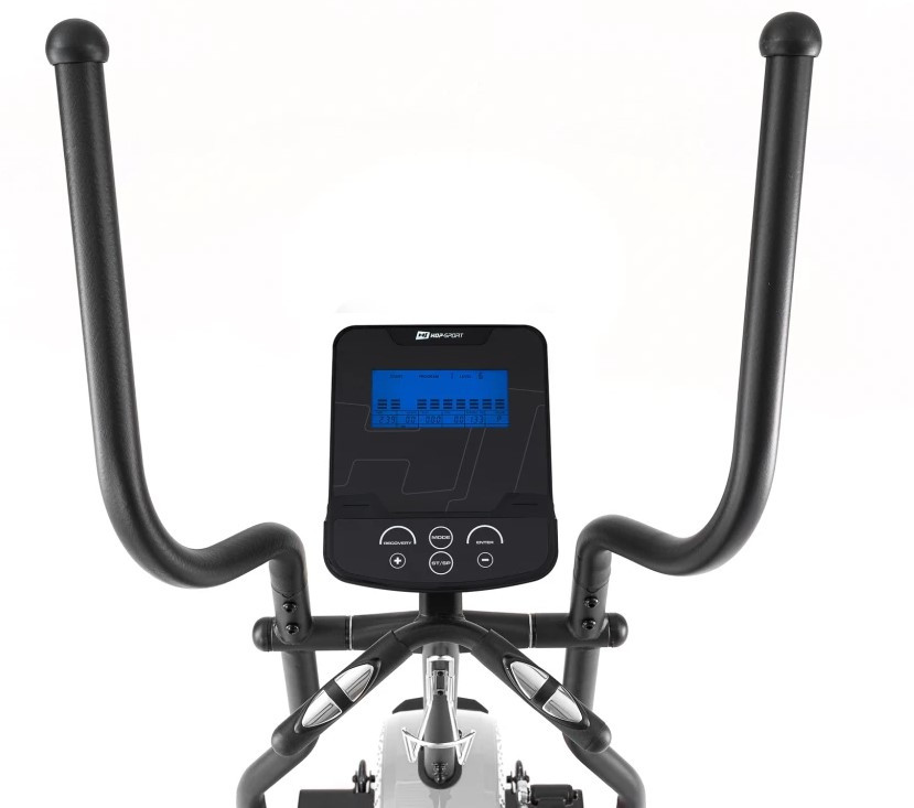 Перетворіть свої тренування в справжній виклик! Тренувальний комп'ютер з РК-дисплеєм на еліптичному тренажері Buzz робить це можливим. Ви можете вибрати одну з 13 програм тренувань: 6 попередньо встановлених, програма призначена для користувача, ручна програма, BODY FAT (визначає рівень жиру в організмі), 3 програми HRC (контроль частоти серцевих скорочень, можливість встановити верхню межу пульсу) і TARGET HR (частота пульсу залежить від віку спортсмена). Лічильник дозволяє контролювати найважливіші параметри тренування: час, швидкість, відстань, калорії, частоту серцевих скорочень. Він також показує обраний вами рівень навантаження, програму тренувань і максимальний рівень пульсу.