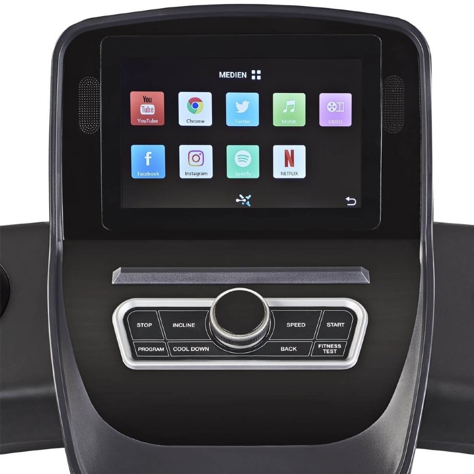 Діліться тренувальними фотографіями та відео безпосередньо зі своїми друзями та знайомими та отримуйте мотивуючі лайки прямо на біговій доріжці під час тренування. З найважливішими соціальними мережами, такими як Facebook, Instagram, Twitter і YouTube, ви виводите свої тренування на новий рівень, представляючи його своєму колу спілкування, поділяючись ними з сім'єю та друзями. Через веб-браузер ви можете отримати корисні поради з бігу під час тренування, замовити нові кросівки або знайти рецепти коктейлю або закуски після тренування.