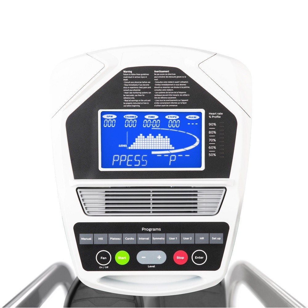 Інтуїтивно зрозумілий дисплей, що легко читається. Світлодіодна консоль оснащена великим матричним дисплеєм із безліччю індикаторів, які в режимі реального часу відображають час, швидкість, глибину кроку, кількість кроків, зусилля, калорії, MET, пульс, рівень опору, симетрію та силу тиску.