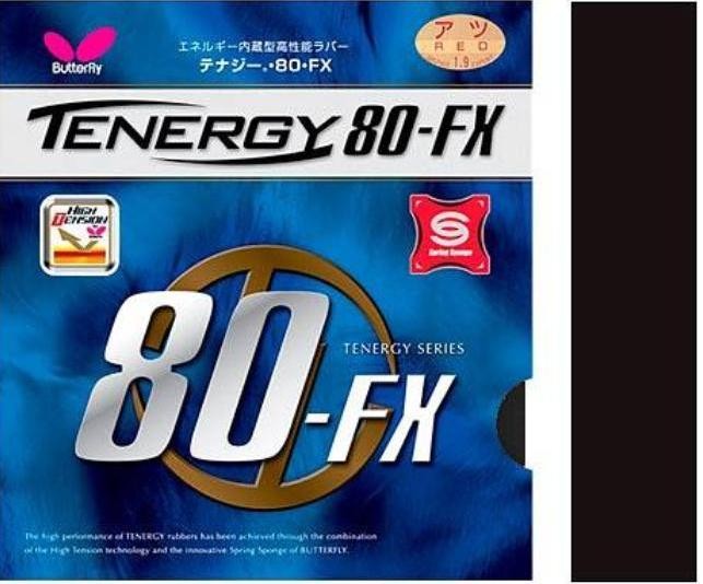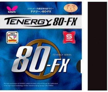 Серія Tenergy 80FX використовує більш м'яку губку FX, яка характеризується наголошеним дотиком та прямолінійною траєкторією кулі. Ця універсальна ракетка підтримує як Topspins, так і оборонну гру. Tenergy 80fx ndash; Це баланс між обертанням і швидкістю.