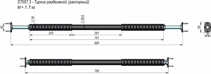 Турник InterAtletika розсувний ST057.3 має на увазі кріплення турніка в розпір до дверної рами, що дозволить встановити турнік в домашніх умовах при дефіциті вільного простору для занять спортом майже не займаючи звичайного життєвого простору. Турник розпирається між двома протилежними вертикальними брусами в місцях, де кріпить на шурупи посадкова пластина. Кріпити турнік можна в розпор маючи достатні по ширині інші надійні опорні поверхні, відстань між якими задовольнятиму розміри, необхідні для надійної установки турніка. Турник дозволяє виконувати вправи на підтягування широким, середнім та вузьким хватом, що сприяє тренуванню м'язів спини, рук, грудей, преса з можливістю підняття ніг. Турнік підходить для різного віку. Види хватів: вузький, широкий, середній (при прямому та зворотному положенні кисті рук).