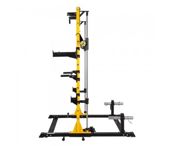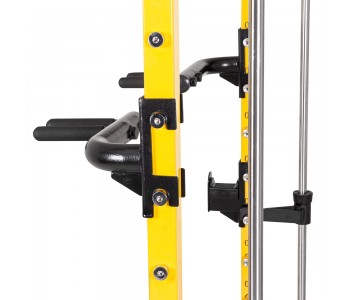 Однак стійка для кількох жимов inSPORTline SM106 дозволяє робити набагато більше, ніж просто вправи зі штангою. Завдяки знімним брусам та універсальній поперечині для підтягування ви також можете виконувати віджимання, віджимання та підтягування. Рухомий тримач штанги дозволяє виконувати вправи Landmine. Оскільки тренування на тренажері Сміта засноване на вагових пластинах, стійка оснащена вбудованими штирями для зберігання вагових пластин, які допоможуть вам організувати зону тренування. Крім того, є міцний гачок, на який можна повісити не лише боксерську грушу, а й еспандер.