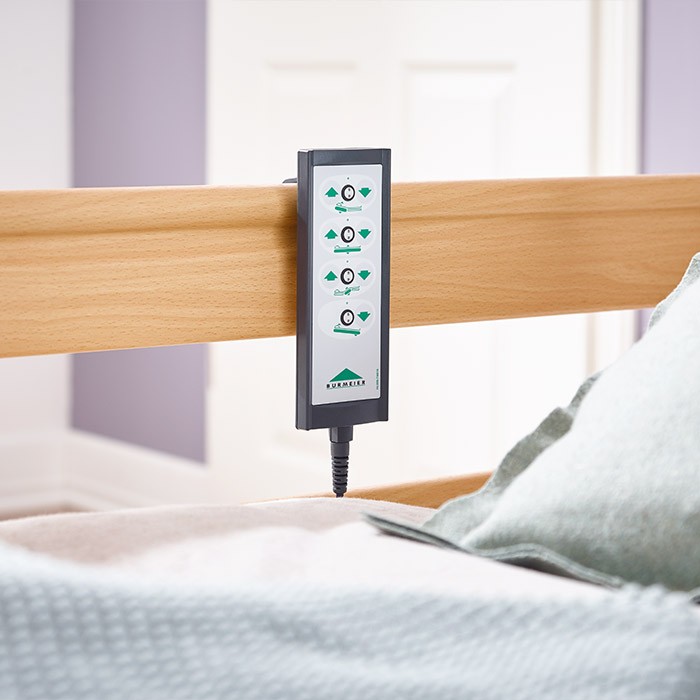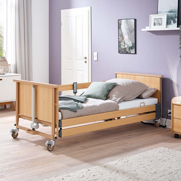 Спинки, бічні огорожі виготовлені з дерева світлих відтінків, ложе (ламелі виготовлені з дерева або металу) має класичну конструкцію без «лікарняних» елементів і відмінно вписується в інтер'єр спальні. Поверхня ложа складається з чотирьох секцій, з фіксаторами для матраца. Висота ліжка, кут нахилу, опора для спини і стегон регулюються електричним способом. Функції ліжка управляються за допомогою пульта управління, є можливість блокувати вибрані функції. Довгий кабель забезпечує зручне користування пультом з будь-якого боку ліжка. Спинки ліжка виготовлені з ламінованої ДСП. Дерев'яні частини ліжка кольору бука. Коліщатка ліжка з індивідуальними гальмами. У головах є спеціальні кишені для вставляння гусака для підведення.