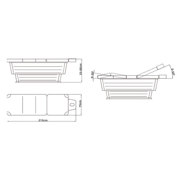 Дана модель являє собою ложе на широкій основі, виконамному з дерева і металу, здатним витримувати навантаження до 250 кг. Підходить для паціентів будь якого зрісту, так як ложа становить 215 см, а ширина 75 см. Виконана кушетка без підлокітників, але зі знімним підголовником і з отвором для особи, так що модель UMC SM-25 Luxe може легко використовуватися як масажний стіл.