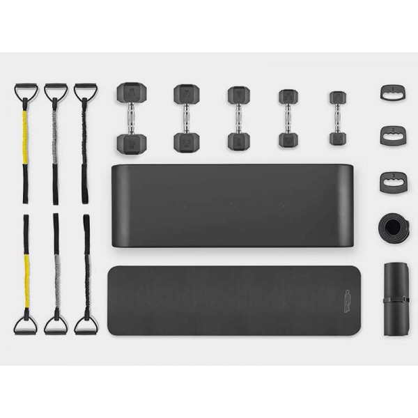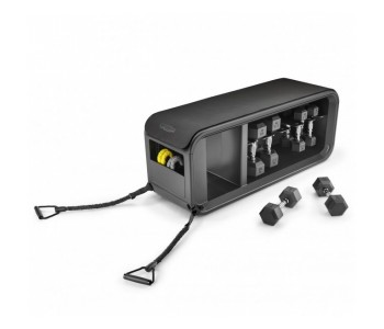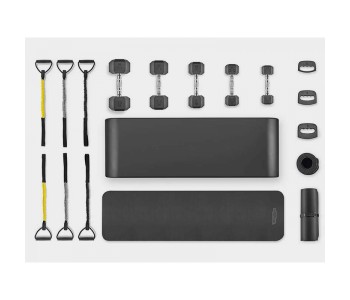 Купуйте це комплексне обладнання для функціональних тренувань, яке дозволить вам виконувати незліченну тренування всього тіла. Комбінуйте гумові стрічки, гантелі, обтяжені ручки та килимок на мінімальному просторі.