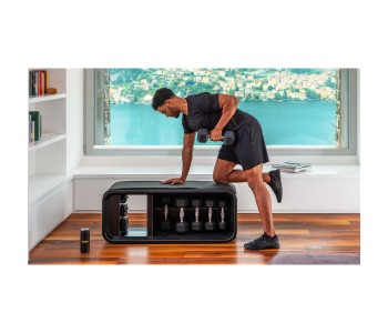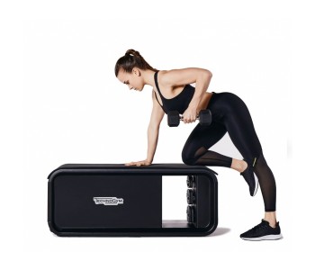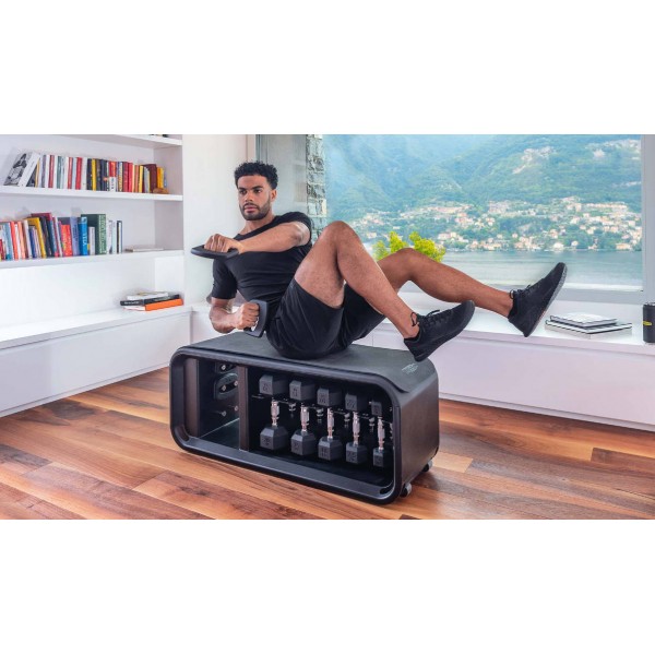 Виконуйте широкий спектр вправ для всього тіла завдяки вільним вагам та аксесуарам, вбудованим у лавку Technogym Bench: шестикутні гантелі, еспандери, обтяжені ручки та килимок – і все це в мінімальному просторі та в мінімалістичному дизайні.