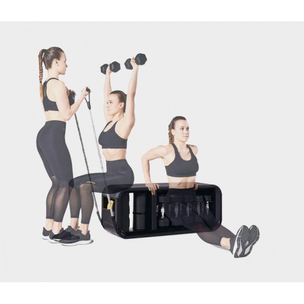 Ремінці з трьома різними опорами та аксесуари додають різноманітності вправі. Його місце для зберігання запобігає їхньому сплутуванню.