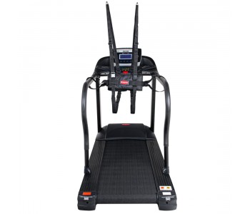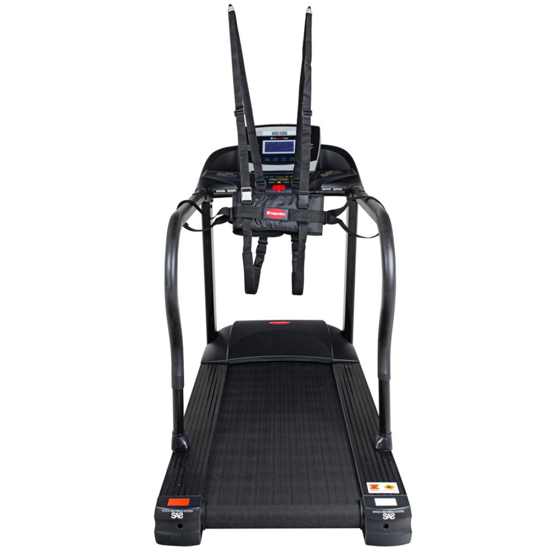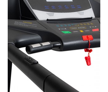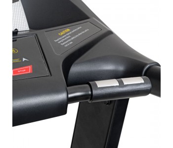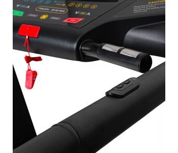 Бічні перила проходять уздовж всього бігового полотна для бігу (на висоті 88 см), на них є кнопки для зміни швидкості і нахилу. Якщо ви хочете відчувати себе в безпеці під час тренування, ви можете прикріпити ремінь безпеки до бігової доріжки, що забезпечить додаткову підтримку. Ремінь підвішується або до стелі, або до нерухомої конструкції, забезпечуючи підтримку під час тренування. Завдяки обмеженню ваги в 180 кг ця машина може витримувати інтенсивні навантаження.