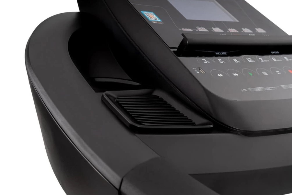 Завдяки USB-роз'єму, розташованому на робочій панелі бігової доріжки Ultima, ви можете користуватися телефоном і планшетом під час тренувань, не турбуючись про їхню розрядку.