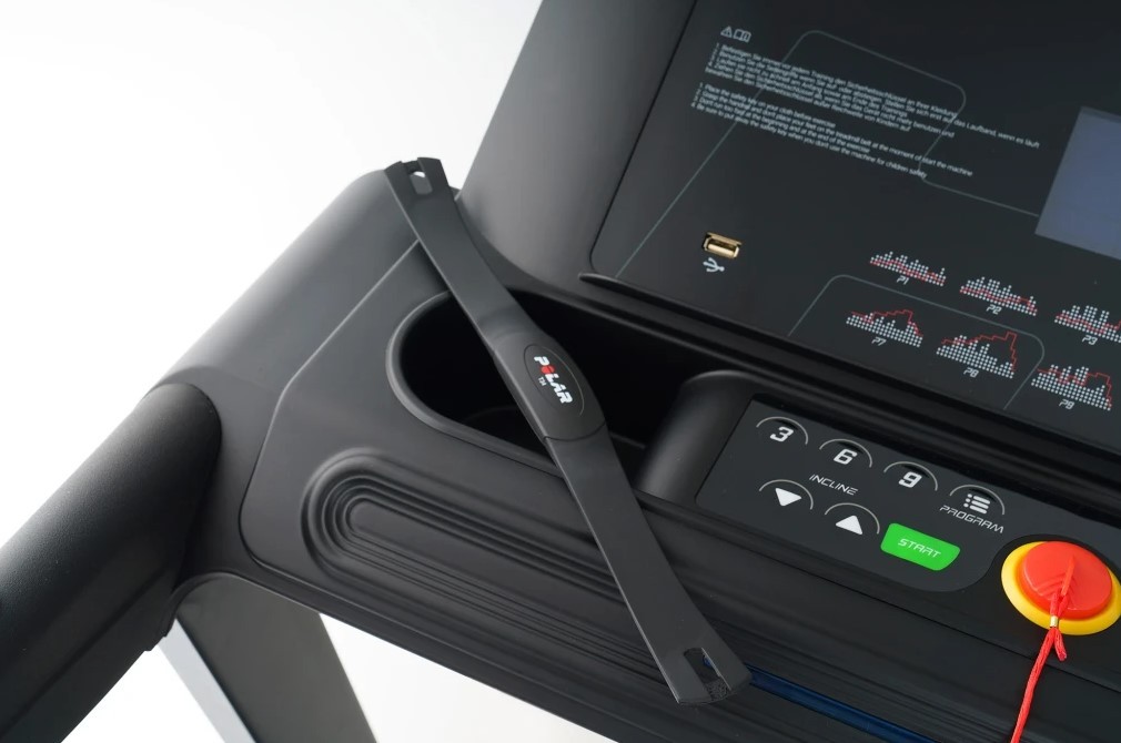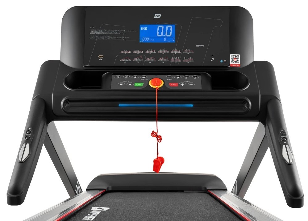 Домашня бігова доріжка HS-1400LB оснащена тренувальним комп'ютером з РК-дисплеєм. Завдяки використанню Bluetooth ви можете підключити свій мобільний пристрій до бігової доріжки та використовувати, наприклад, мобільний додаток FitShow. Над дисплеєм є спеціальний зручний тримач для мобільного пристрою, а також тримач для пляшки з водою. Вбудований динамік і можливість підключення MP3 з улюбленою музикою зроблять ваші тренування приємнішими.