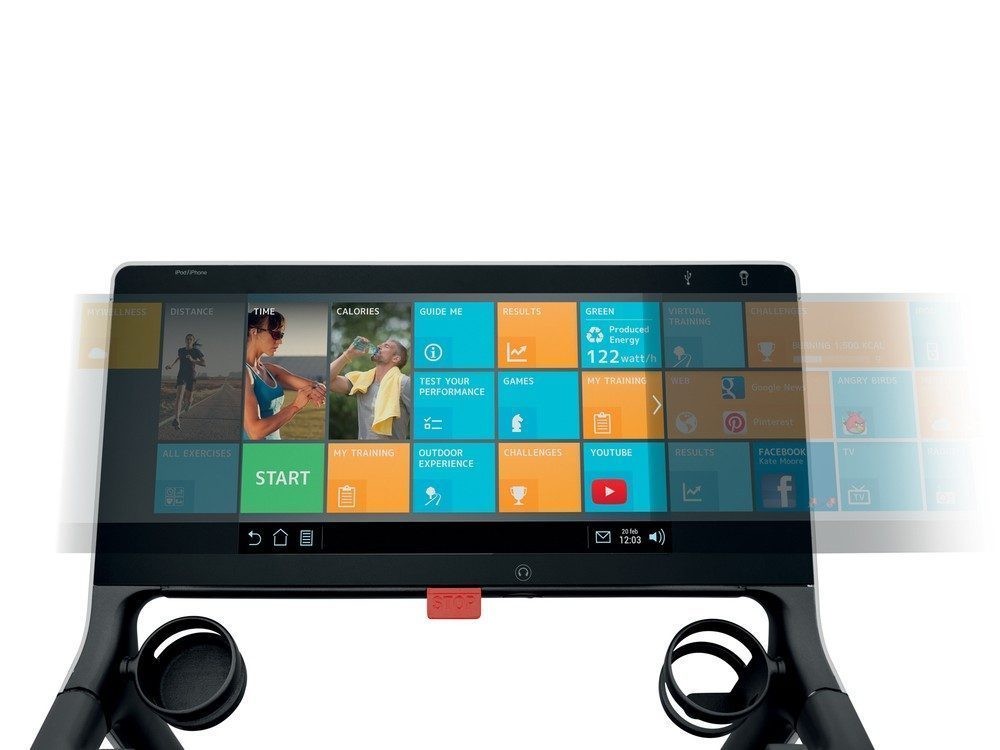Run Personal оснащений найсучаснішою та найтехнологічнішою консоллю UNITY на базі Android 9.Х з дуже швидким процесором. За керуванням консоль нагадує звичайний планшет. Сенсорний екран 21,5 дюйми (54,6 см) дає можливість дивитися відео у Full HD. Ви можете увійти в систему через Bluetooth або Wi-Fi з будь-якого пристрою на базі Android (4.3 та вище) або iOS (8.0 і вище). Також біля доріжки з'явився утримувач для планшета/журналу.