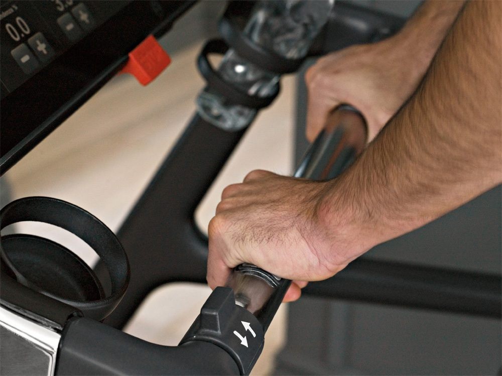 Легке управління, зрозумілі налаштування та система безпеки роблять тренування на біговій доріжці простими та безпечними для початківців та досвідчених спортсменів. Протиковзні краї та кнопка аварійної зупинки підвищують стандарт безпеки. Бічні ручки допомагають стабілізувати тіло при інтенсивному тренуванні. Кнопки керування на ручках дають можливість швидко регулювати швидкість та кут підйому.