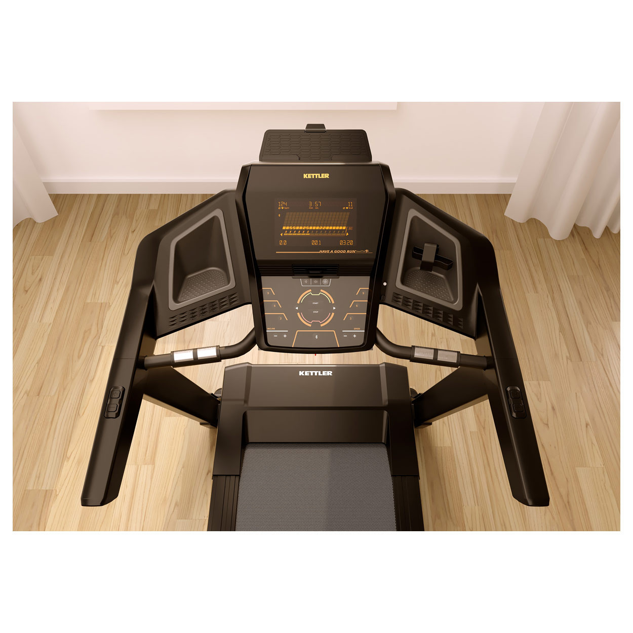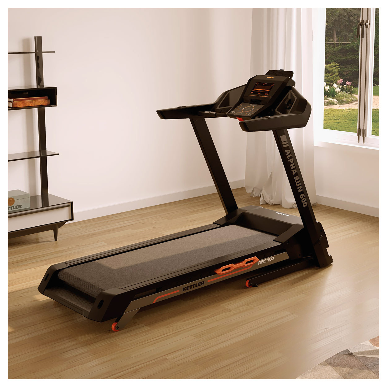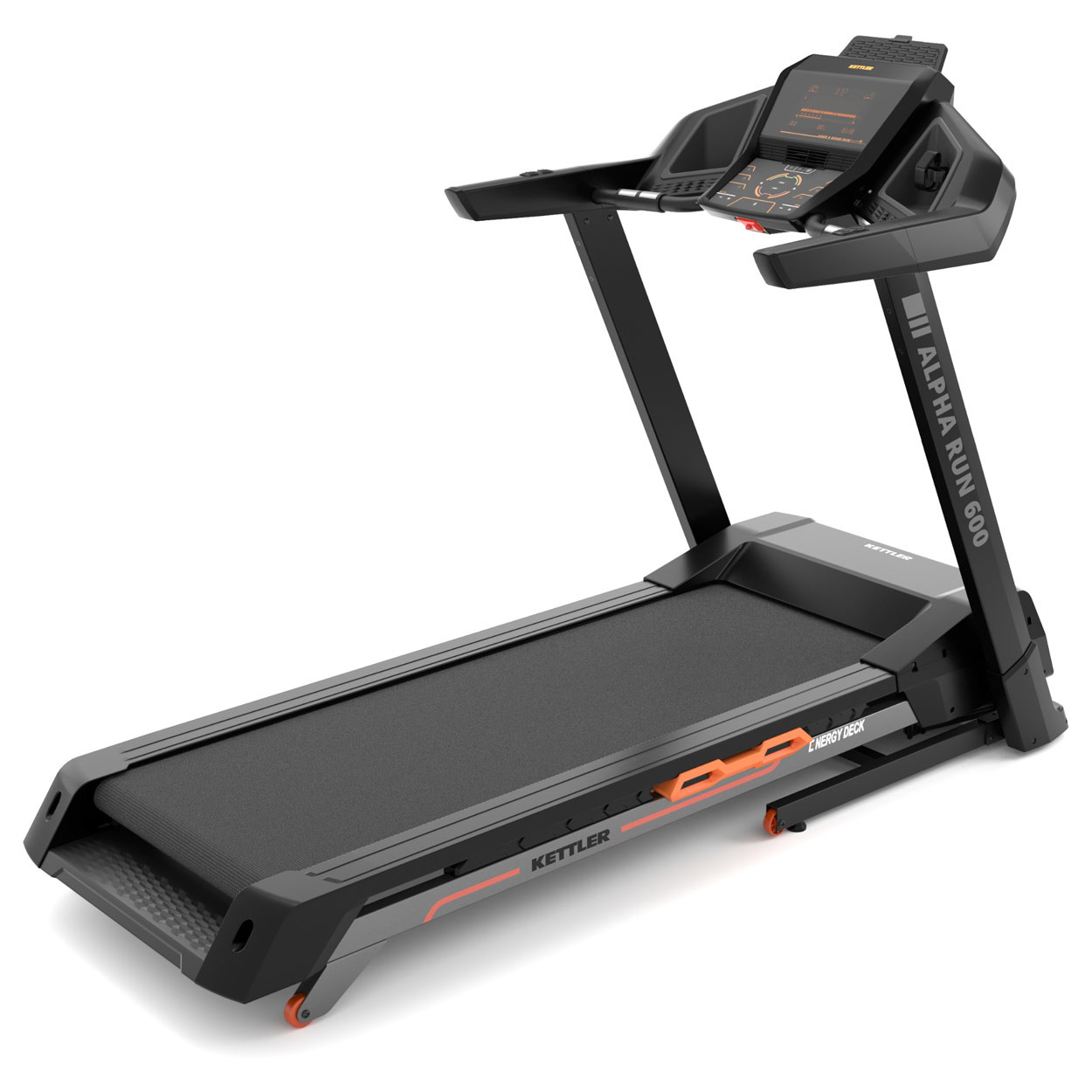 Бігове полотно розміром 153 x 55 см забезпечує достатньо місця для комфортного тренування. Високоякісна система амортизації ENERGY DECK означає, що тренування на біговій доріжці KETTLER ALPHA RUN 600 не навантажують суглоби. Ви можете насолоджуватися надзвичайно комфортним і динамічним бігом . Амортизація поглинає кінетичну енергію ваших кроків і повертає її назад. Транспортні колеса дозволяють легко переміщати бігову доріжку після тренування.
