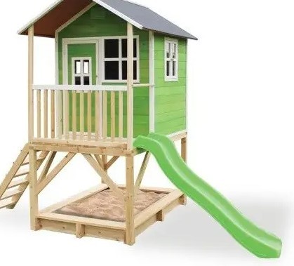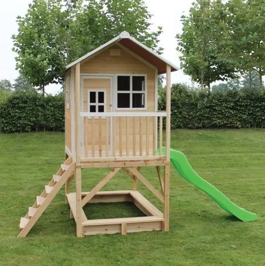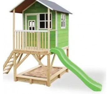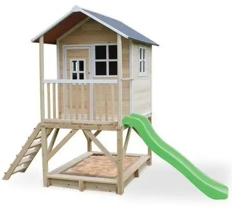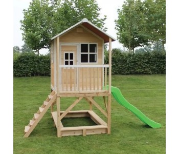 З таким ігровим будиночком вашим дітлахам не буде нудно жодну хвилину. Конструкція стоїть на палях і має сходи та спуск, які можна прикріпити як ліворуч, так і праворуч.