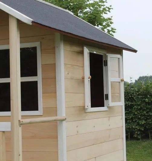 Дерев'яний будиночок з висотою гірки 95 см виконаний із натурального масиву сосни в мінімалістському скандинавському стилі для розміщення на вулиці, в саду або на території приватної садиби.