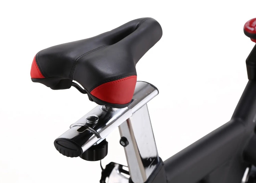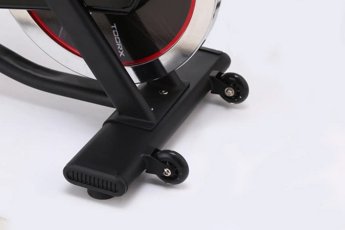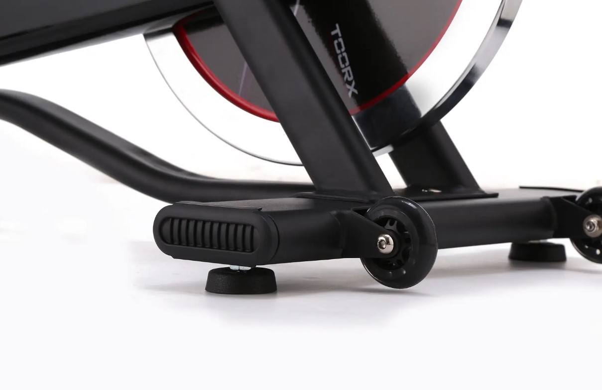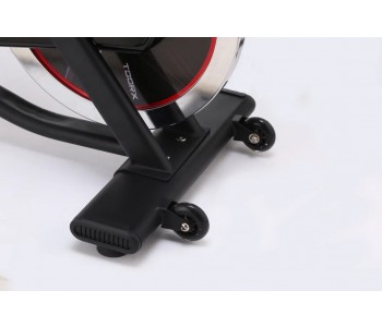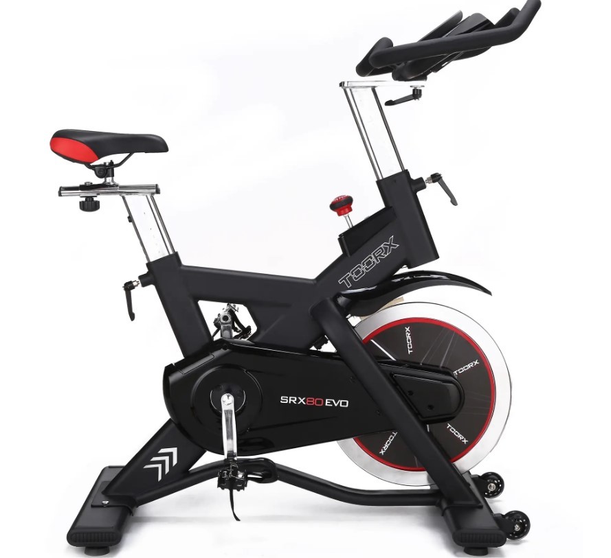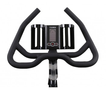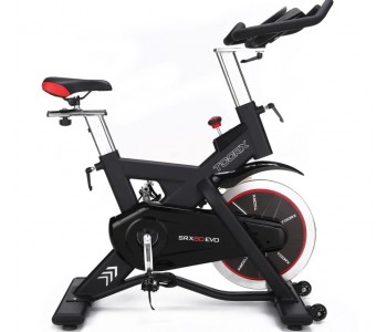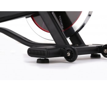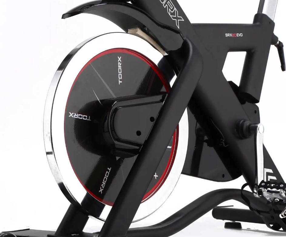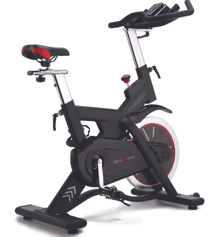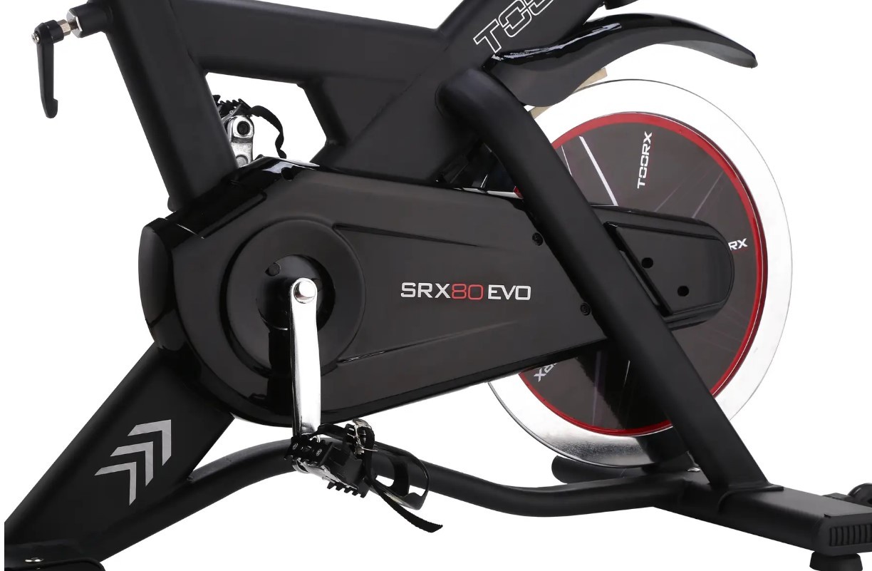 Сайкл-тренажер Toorx Indoor Cycle SRX 80EVO (SRX-80EVO) від італійського виробника Garlando S.p.A. призначений для інтенсивного кардіотренування в домашніх умовах. Тренажер має колодкову гальмівну систему з ручним безступінчатим регулюванням навантаження, а також сучасний комп'ютер із необхідним набором функцій. Важкий 24-кілограмовий маховик разом із ремінним приводом забезпечують безшумність роботи тренажера та достатнє навантаження навіть для підготовлених спортсменів. Спін байк розрахований на вагу до 140 кг і підійде для користувачів зростом до 2 м. Нагрудний кардіодатчик для бездротового вимірювання пульсу буде доречним під час тренування для контролю частоти серцевих скорочень. Спортивне сидіння та кермо регулюються по висоті та в горизонтальній площині, забезпечуючи індивідуальне налаштування. Транспортувальні ролики в передній частині тренажера дозволяють вільно переміщати його по кімнаті.