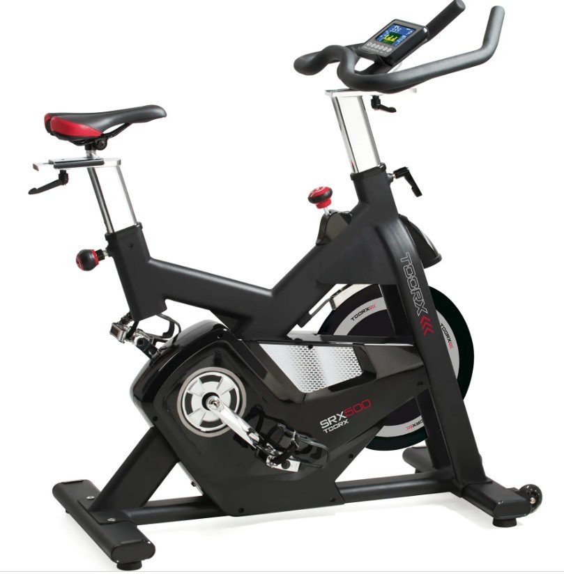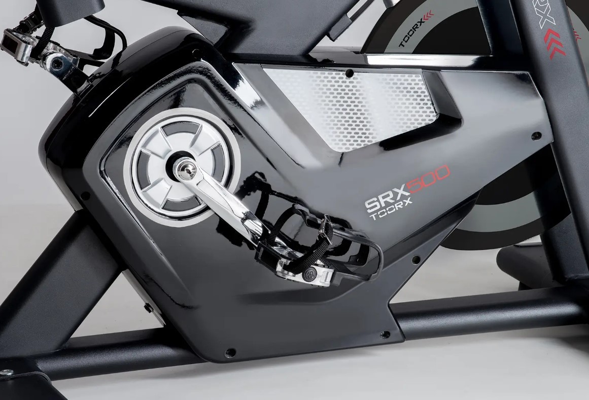 Сайкл-тренажер Toorx Indoor Cycle SRX 500 (SRX-500) із преміальної лінійки Chrono Line італійського виробника Garlando S.p.A. призначений для інтенсивного кардіотренування в домашніх умовах. Тренажер оснащений новітньою магнітною гальмівною системою, яка безпосередньо впливає на маховик, що дозволяє надзвичайно плавно обертати педалі на найнижчих рівнях навантаження, а також сучасний комп'ютер із необхідним набором функцій. Важкий 24-кілограмовий маховик разом з ремінним приводом забезпечують безшумність роботи тренажера і достатнє навантаження навіть для підготовлених спортсменів. Спін байк розрахований на вагу до 150 кг і підійде для користувачів зростом до 2 м. Нагрудний кардіодатчик для бездротового вимірювання пульсу буде доречним під час тренування по одній із чотирьох пульсозалежних програм. Спортивне сидіння і кермо регулюються по висоті та в горизонтальній площині, забезпечуючи індивідуальне налаштування. Транспортувальні ролики в передній частині тренажера дозволяють вільно переміщати його по кімнаті. Консоль тренажера має тримач для смартфона / планшета і підтримує Bluetooth для інтеграції з популярними додатками iConsole+ Training, Kinomap та Zwift, які перетворять монотонне тренування в захоплюючий процес.