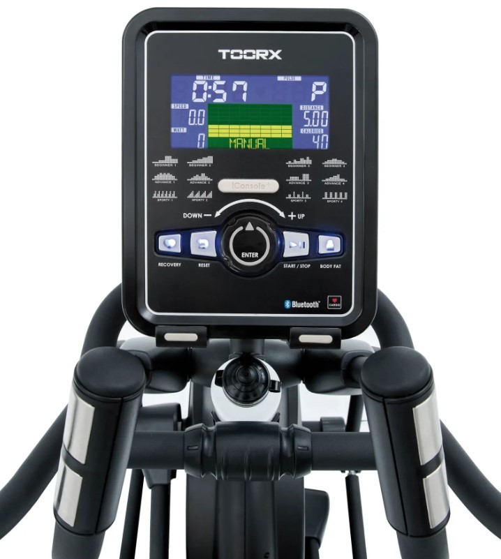 Орбітрек Toorx Elliptical ERX 500 (ERX-500) з преміальної лінійки Chrono Line італійського виробника Garlando S.p.A. призначений для інтенсивного кардіотренування в домашніх умовах. Тренажер має 32 рівні навантаження, що регулюються за допомогою сучасного комп'ютера. 16-кілограмовий маховик створює чудову плавність ходу, знижуючи навантаження на суглоби та мінімізуючи ризик отримання травми в процесі занять. Орбітрек розрахований на вагу до 130 кг, а довжина кроку 46 см припаде до вподоби навіть найвибагливішим користувачам. Вбудований приймач для бездротового датчика вимірювання пульсу буде доречним під час тренування по одній із чотирьох пульсозалежних програм. Консоль тренажера має тримач для смартфона / планшета і підтримує Bluetooth для інтеграції з популярними додатками iConsole+ Training, Kinomap та Zwift, які перетворять монотонне тренування в захоплюючий процес.