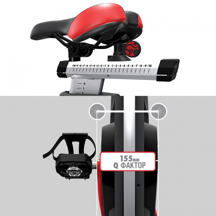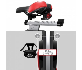 Дизайн зміщеної рами створює ідеальну геометрію для максимальної кількості налаштувань. Q фактор в 155 мм дає відчуття їзди на справжньому велосипеді. Перевага у підвищеній безпеці, комфорті та ефективності кожного натискання педалей.