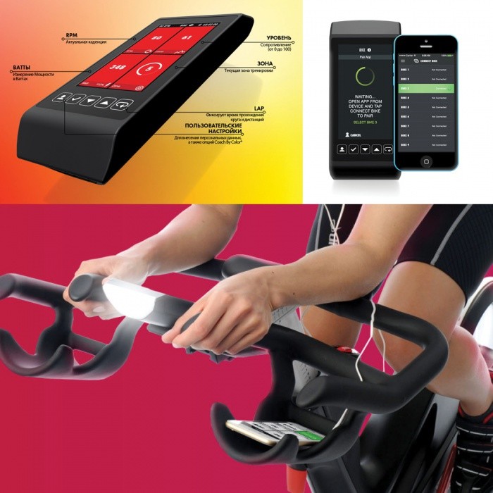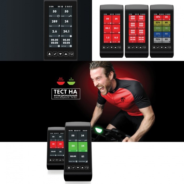 Комп'ютер WattRate® має яскравий, автономний, повністю інтегрований екран TFT і LED дисплей на лицьовій панелі. Завдяки високій потужності LED індикатора і грамотному дизайну кріплення, яскравий колір, що запалює передню панель, можна побачити з великої відстані і під великим кутом. Це неймовірно ефективна і в той же час універсальна функція, яка виявиться дуже корисною для роботи у різних студіях і кардіо-зонах. П'ять сенсорних клавіш забезпечують швидку і інтуїтивну роботу з комп'ютером навіть під час тренування.