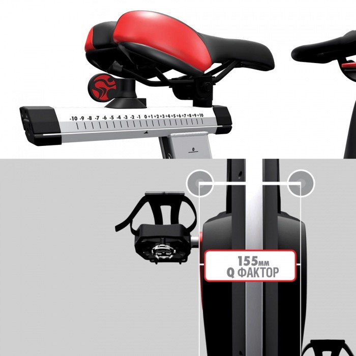 Дизайн зміщеної рами створює ідеальну геометрію для максимальної кількості налаштувань. Q фактор в 155 мм дає відчуття їзди на справжньому велосипеді. Перевага у підвищеній безпеці, комфорті та ефективності кожного натискання педалей.