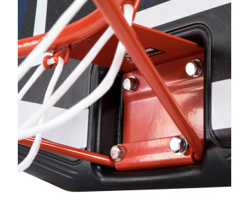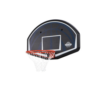 Міцний, удароміцний 44-дюймовий баскетбольний щит, виготовлений за технологією Impact®, із поліетилену високої щільності з помаранчевим ободом Classic. Графіка на щиті стійка до вицвітання під впливом УФ-променів. Обід виготовлений із сталевої труби з бічними підсиленнями. атмосферостійка нейлонова сітка.