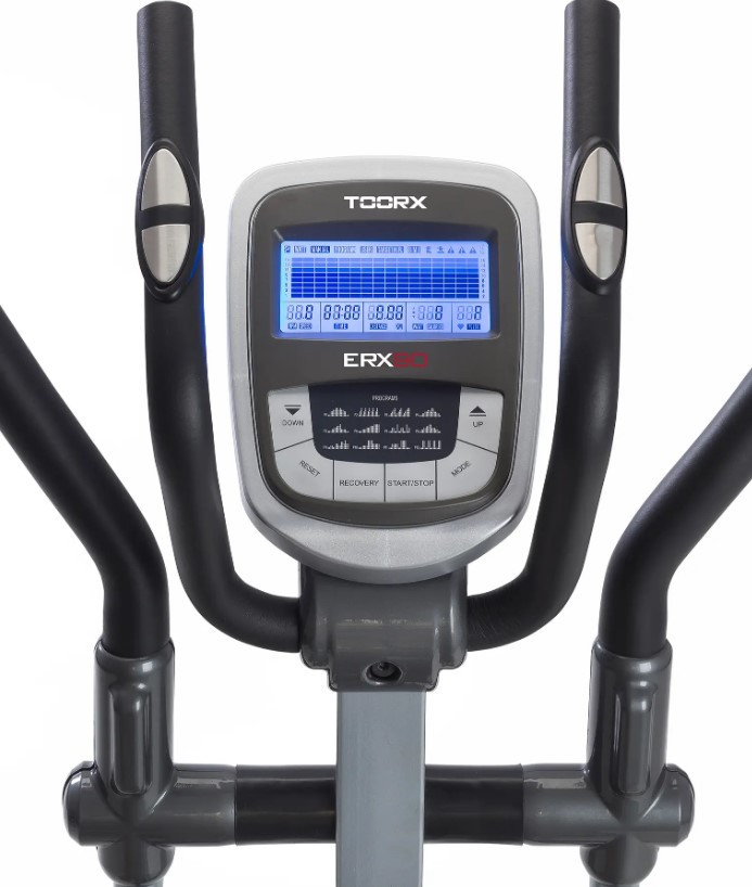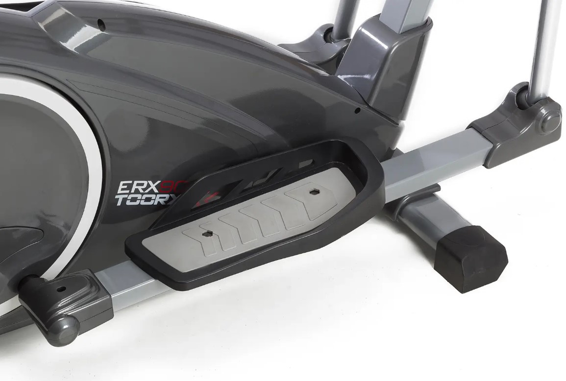 Орбітрек Toorx Elliptical ERX 90 (ERX-90) від італійського виробника Garlando S.p.A. призначений для повноцінного кардіотренування в домашніх умовах. Тренажер має 16 рівнів навантаження, що регулюється за допомогою сучасного комп'ютера. 14-кілограмовий маховик створює гарну плавність ходу, знижуючи навантаження на суглоби та мінімізуючи ризик отримання травми в процесі занять. Орбітрек розрахований на вагу до 120 кг, а довжина кроку 34 см підійде для користувачів середнього зросту. Вбудовані сенсорні датчики вимірювання пульсу будуть доречними під час тренування по одній із чотирьох пульсозалежних програм. Платформи для ніг регулюються в 3-х положеннях, а транспортувальні ролики в передній частині тренажера дозволяють переміщати його по кімнаті.