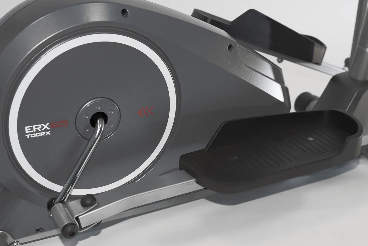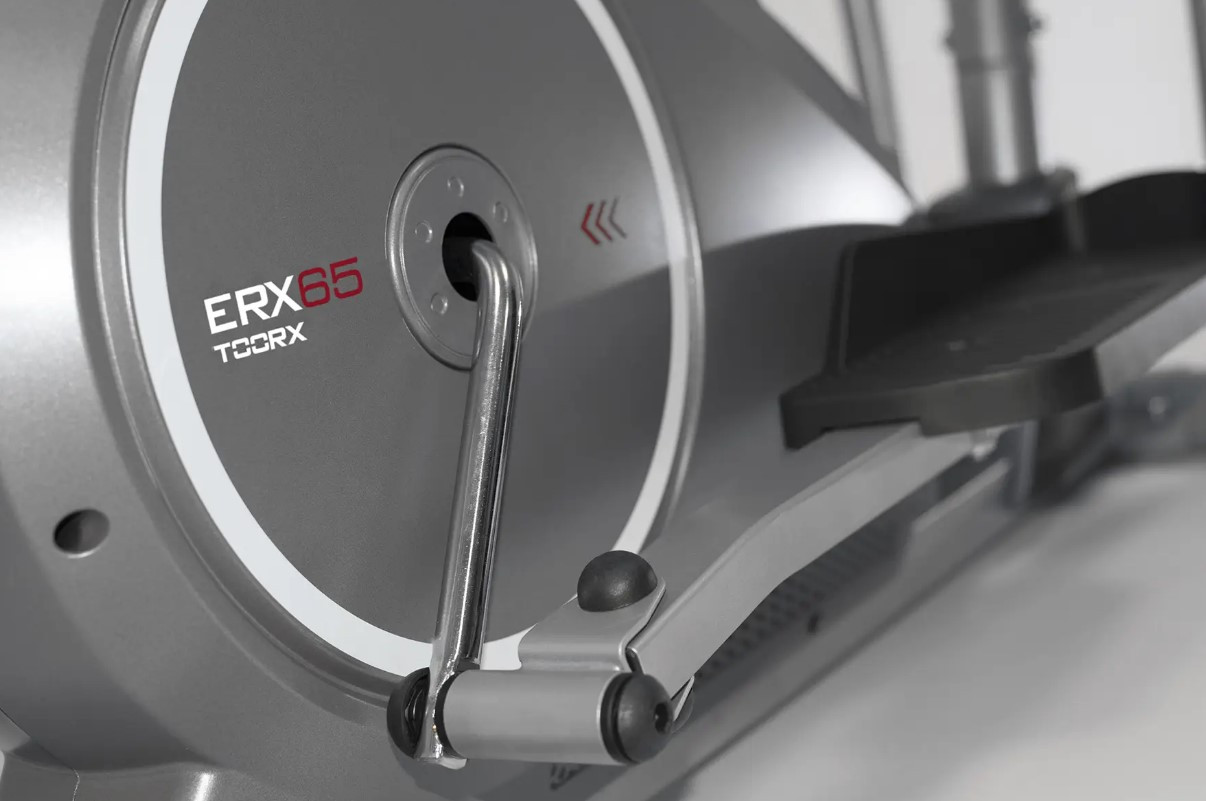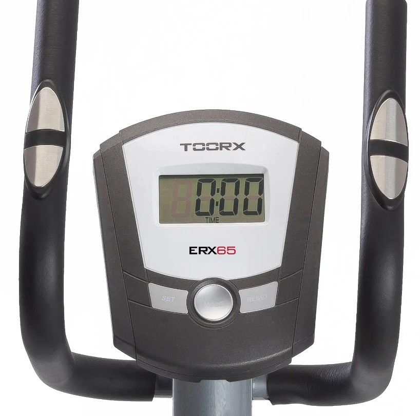 Орбітрек Toorx Elliptical ERX 65 (ERX-65) від італійського виробника Garlando S.p.A. призначений для повноцінного кардіотренування в домашніх умовах. Тренажер має ручне 8-рівневе регулювання навантаженням, а також простий у використанні комп'ютер. 8-кілограмовий маховик створює необхідну плавність ходу, знижуючи навантаження на суглоби і мінімізуючи ризик отримання травм під час занять. Орбітрек розрахований на вагу до 110 кг, а довжина кроку 33 см підходить для користувачів середнього зросту. Вбудовані сенсорні датчики вимірювання пульсу будуть корисні під час тренування для контролю частоти серцевих скорочень. Платформи для ніг регулюються в 3-х положеннях, а транспортувальні ролики в передній частині тренажера дозволяють переміщати його по кімнаті.