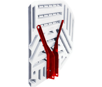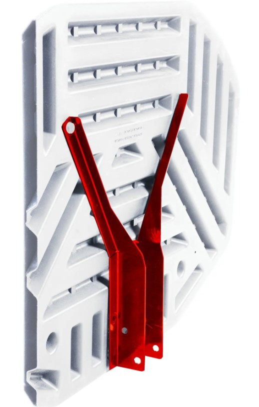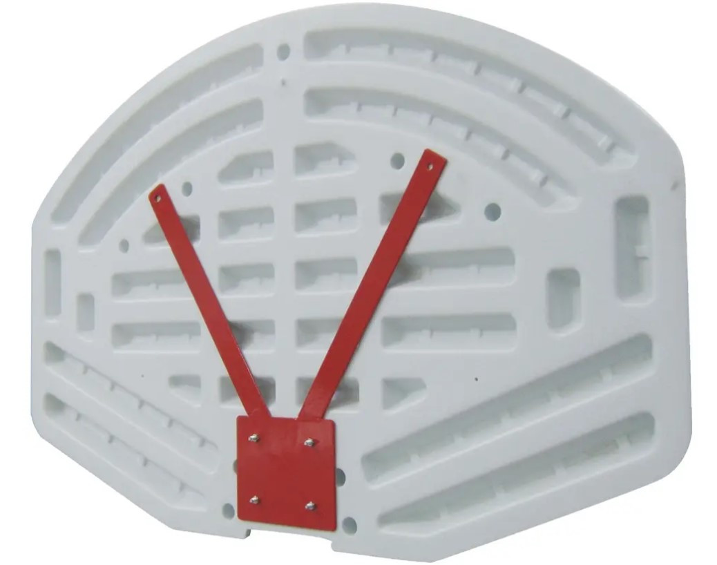 - - Щит із червоними лініями на білому фоні доповнюється сталевим кільцем Ø45 см червоного кольору з порошковим покриттям і поліпропіленовою сіткою для використання на вулиці.