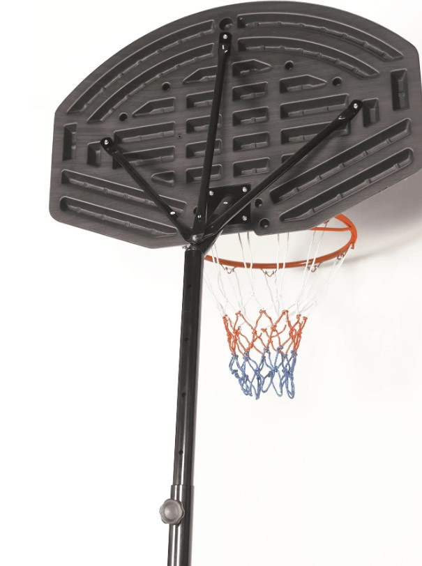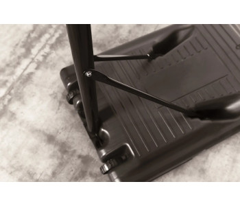 Основа з чорного формованого поліетилену, оснащена колесами спереду, її можна наповнити водою для забезпечення стійкості під час гри.