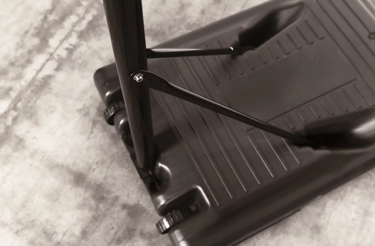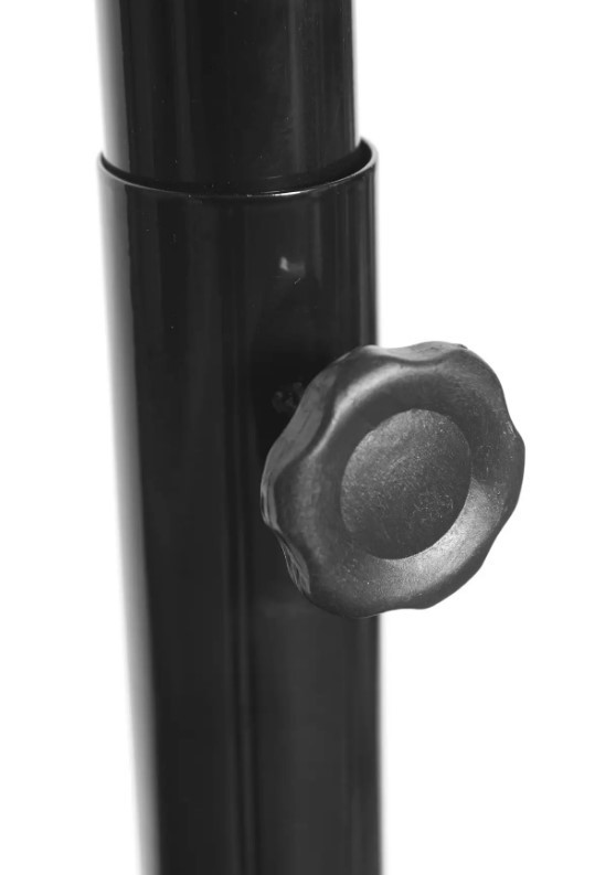 Вертикальна конструкція з регульованою висотою, зі сталевої телескопічної труби і армуючих кріплень, покрита порошковою фарбою чорного кольору.