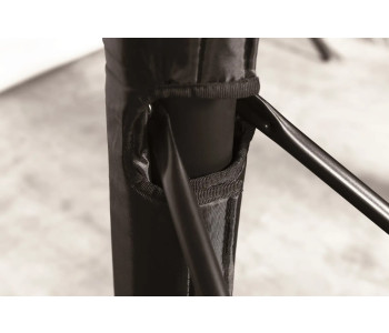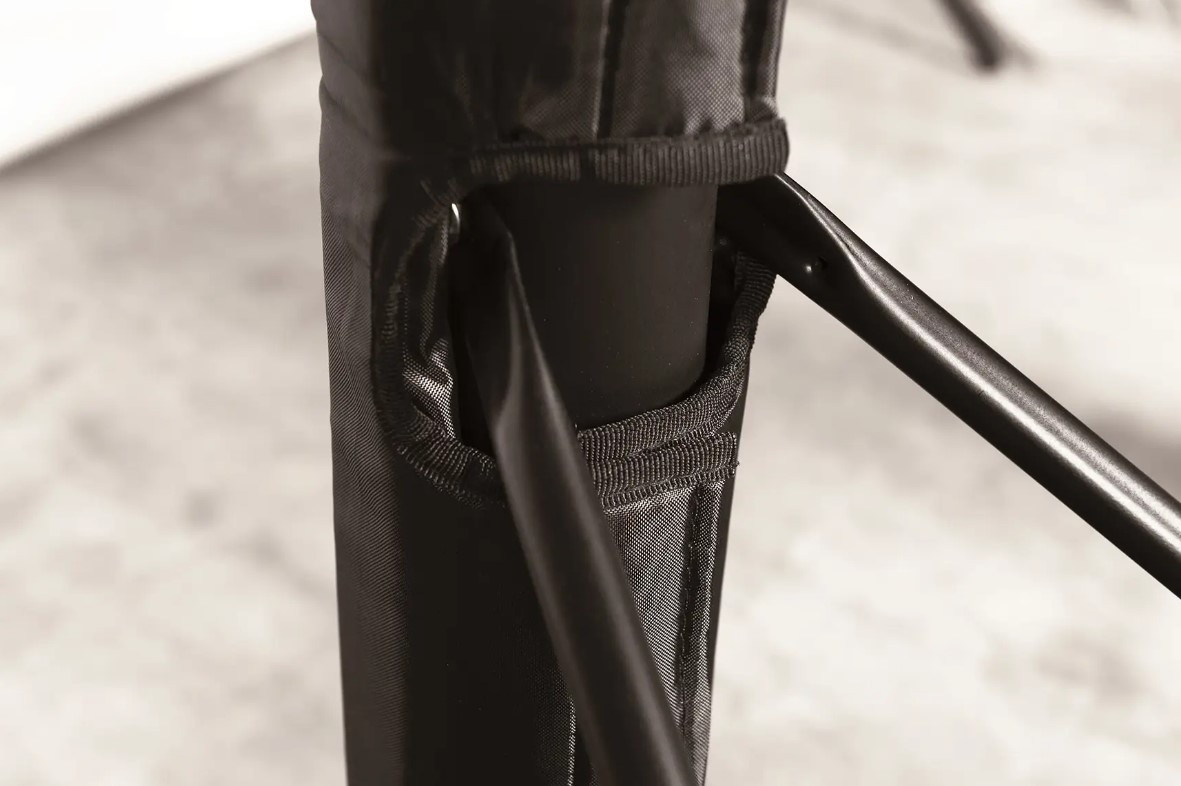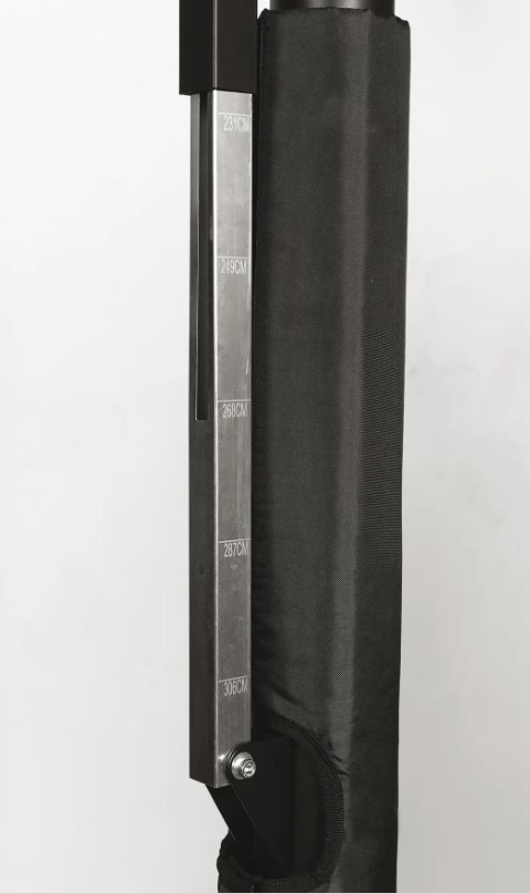 Вертикальна конструкція з регульованою висотою, зі сталевої телескопічної труби Ø60 мм і армуючих кріплень, покрита порошковою фарбою чорного кольору.