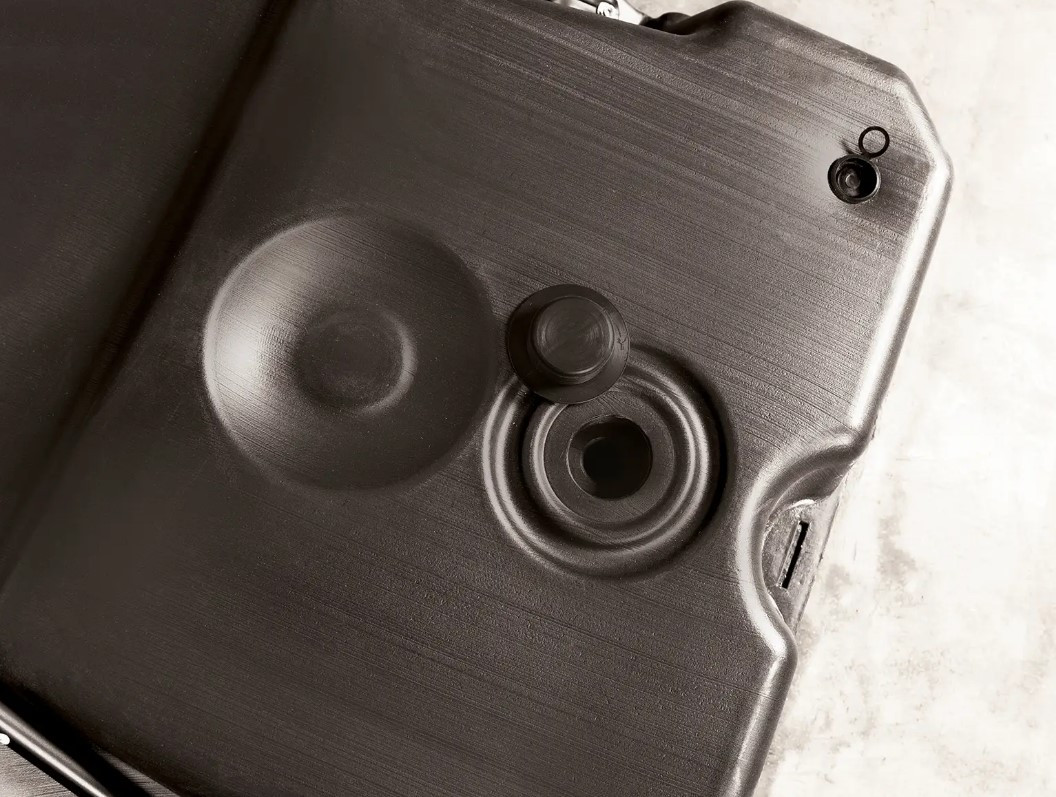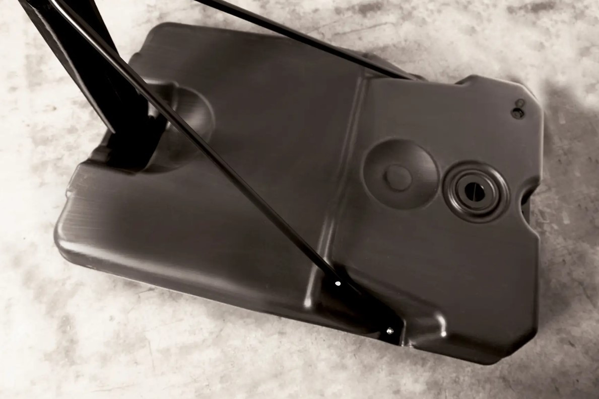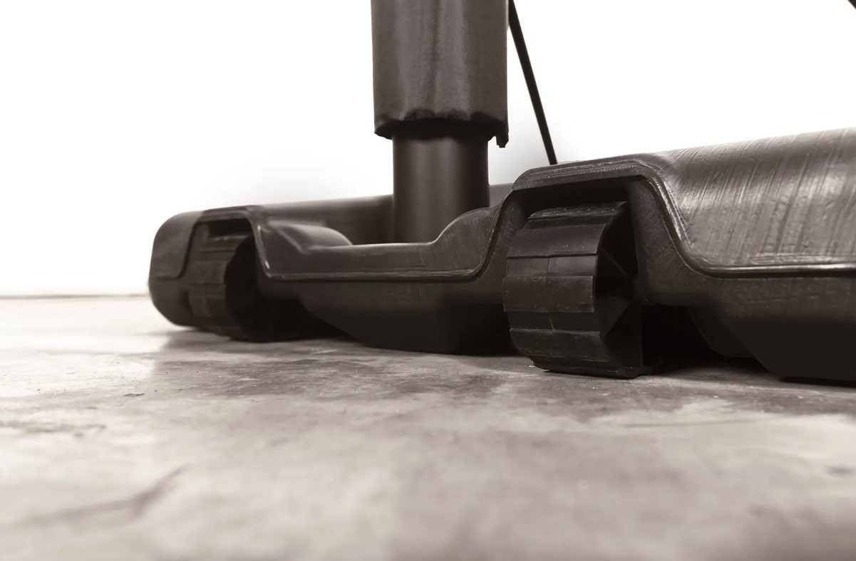 Основа з чорного формованого поліетилену, оснащена колесами спереду, її можна наповнити водою для забезпечення стійкості під час гри.