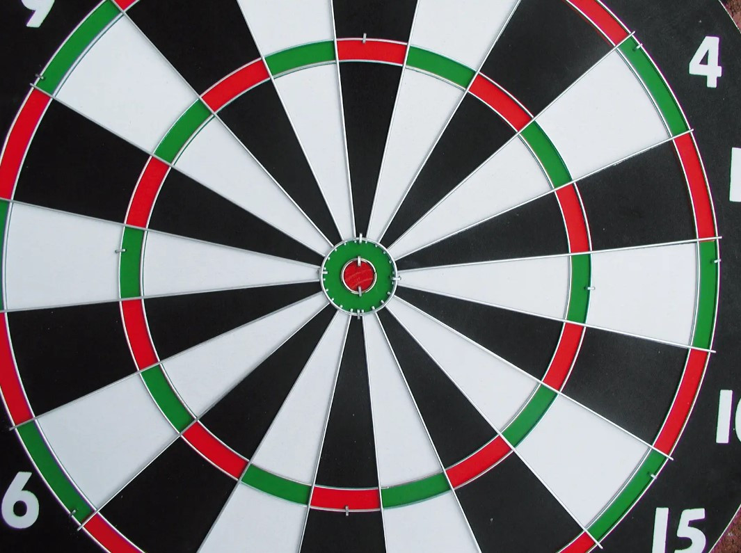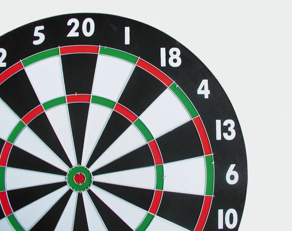 - - Сторона 1: традиційна гра в дартс. Поділ на 20 секторів і 2 центри. Класичні кольори.