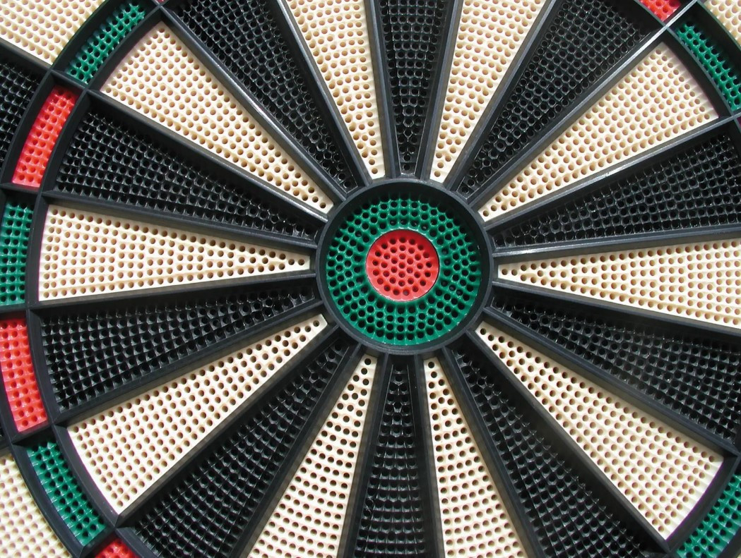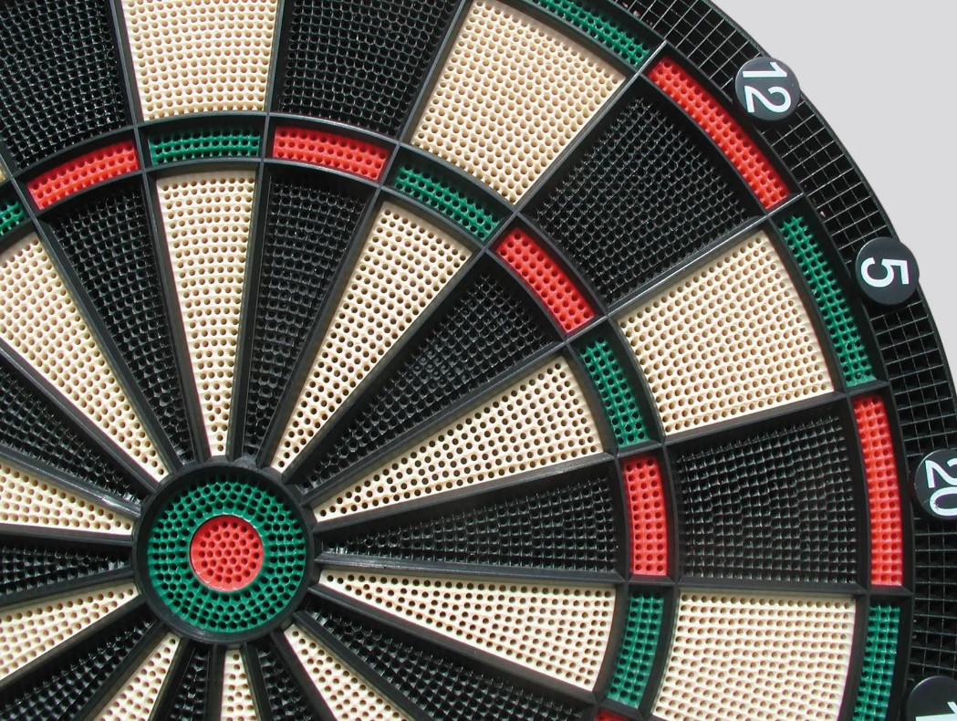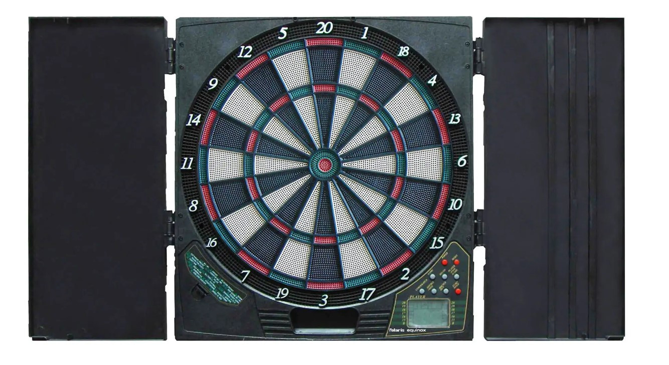 - - Сторона 1: традиційна гра в дартс. Поділ на 20 секторів і 2 центри. Класичні кольори.