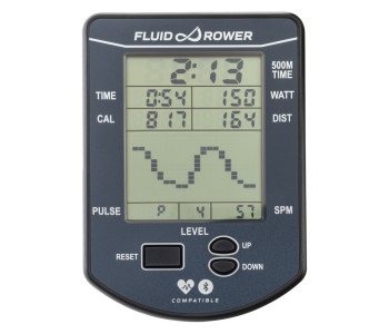 - Fluid Bluetooth Monitor аналізує ваші параметри тренування в реальному часі: час, калорії, відстань, кількість гребків, ватаж, рівень опору.