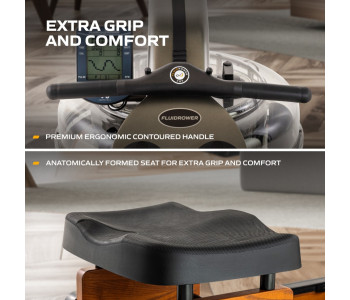 Fluid Apollo Pro V (арт. 22FAPPV000) — преміум-тренажер для веслування, виготовлений з міцної сталі та американського ясена з розкішним оздобленням темного дуба. Він поєднує реалістичне відчуття веслування на воді та сучасні технології для максимально ефективних тренувань.