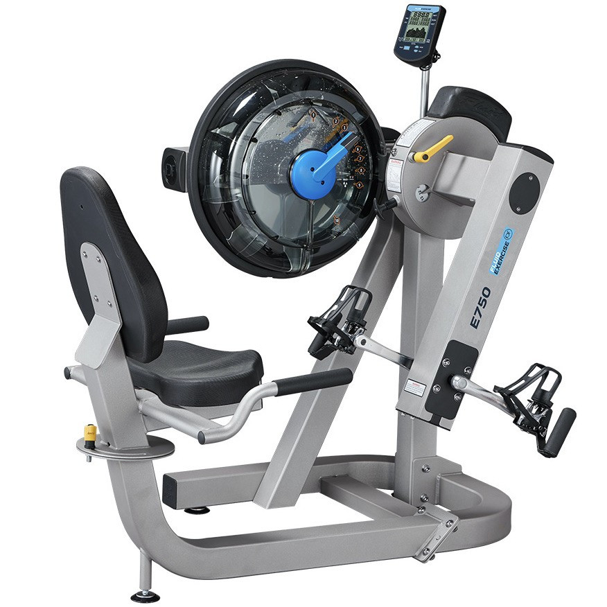 Fluid E750 — це інноваційний кардіотренажер професійного рівня, який поєднує в собі функції горизонтального велотренажера та ергометра для тренування верхньої частини тіла. Завдяки запатентованій водній системі опору та широкому функціоналу, E750 ідеально підходить як для інтенсивних HIIT-тренувань, так і для реабілітаційних програм.