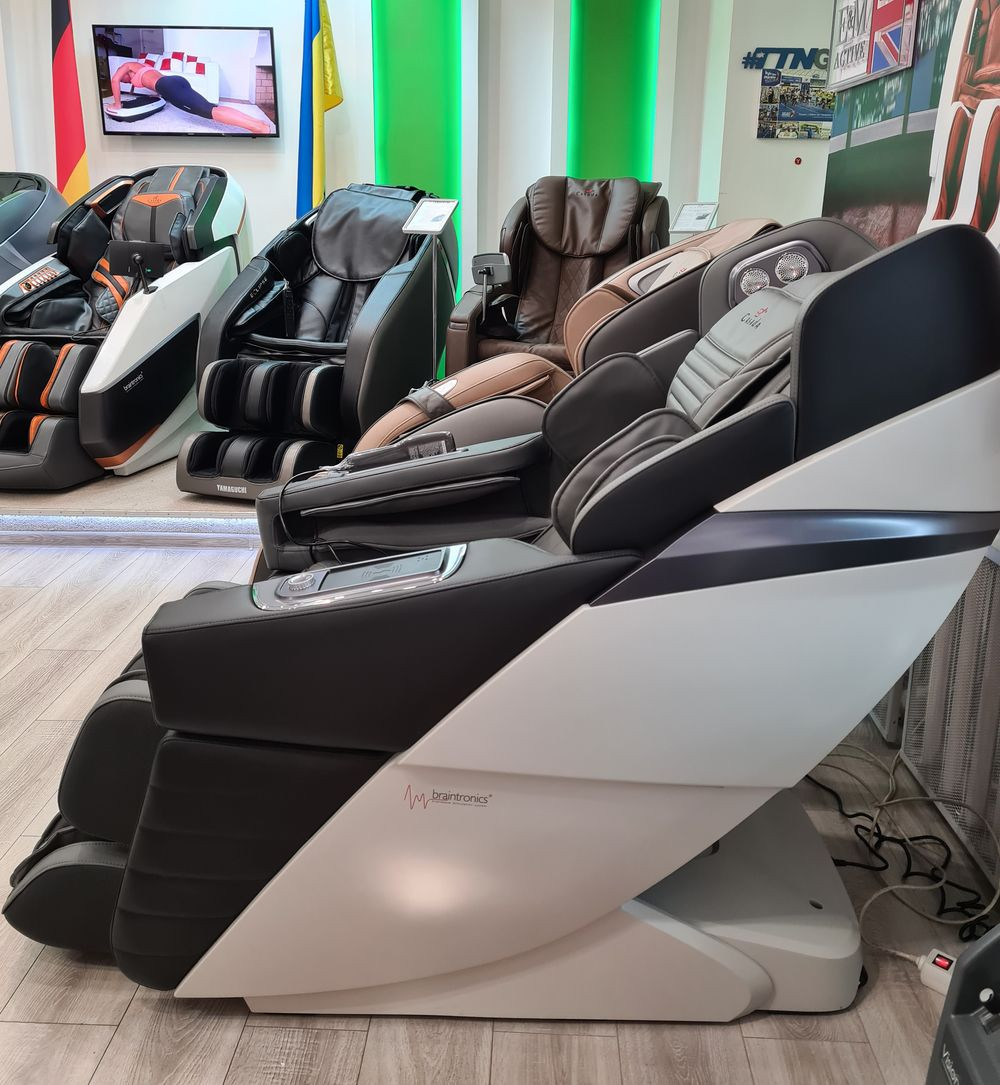 Вибравши одну з унікальних програм Braintronics, ви зможете повністю розслабитись. Масажне крісло дозволить вам зняти втому від напруженого робочого дня всього за 21 хвилину. Легкий масаж у поєднанні зі спеціальними розслаблюючими звуками аналогічні до медитації. Вдосконалена програма braintronics використовує звукову стимуляцію для синхронізації ваших мозкових хвиль. Одягайте навушники і пориньте у світ braintronics.