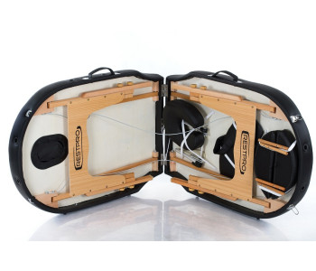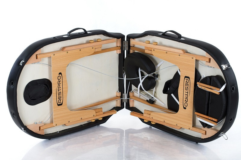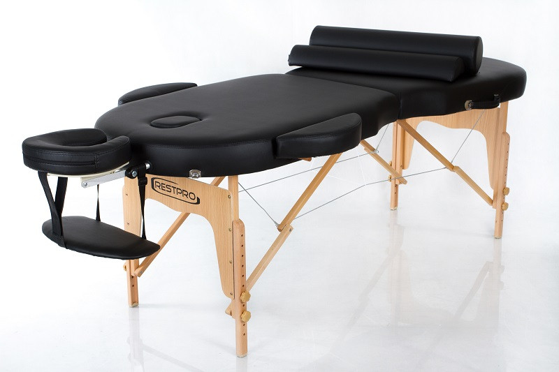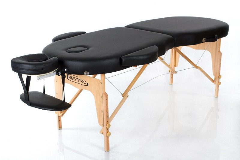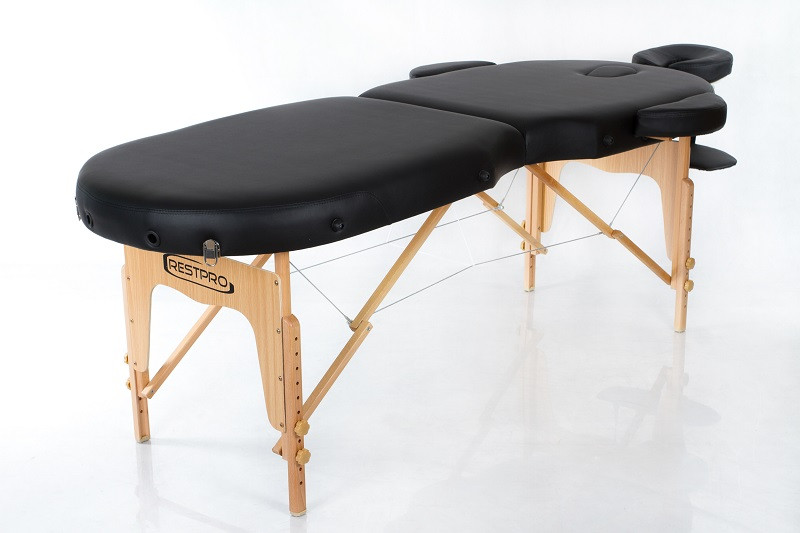 Масажний стіл RESTPRO VIP OVAL 2 Чорний стане відмінним рішенням і для масажного, і для косметологічного кабінету. Модель дуже вдало поєднує в собі елегантне оформлення, функціональність і високу якість виготовлення.