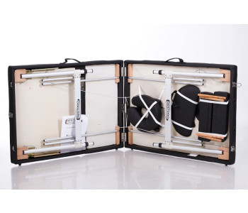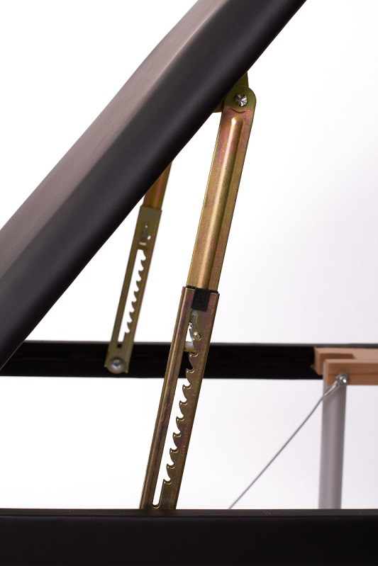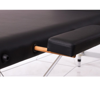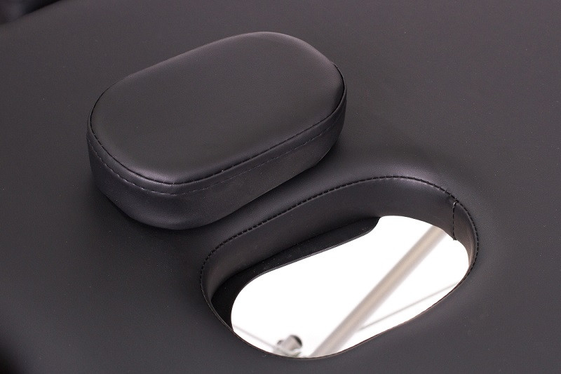 Завдяки продуманій до дрібниць конструкції стіл буде максимально комфортним і для клієнта, і для майстра. Стільниця складається з трьох секцій різного розміру. Одна з них виконує роль спинки. Вона піднімається і надійно фіксується в заданій позиції. Підйомна частина також стане в нагоді в тих випадках, коли необхідно створити підняте положення нижніх кінцівок.